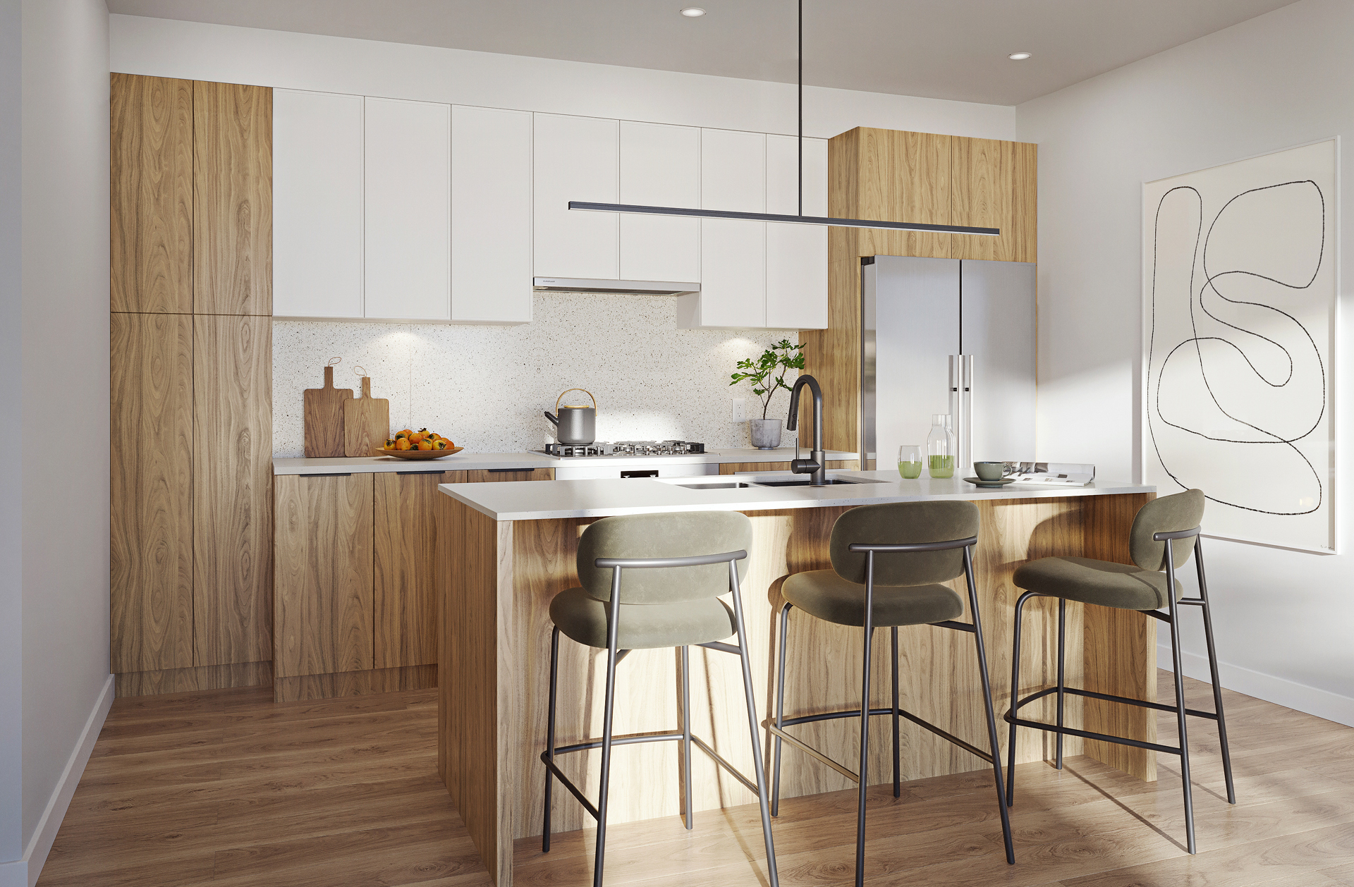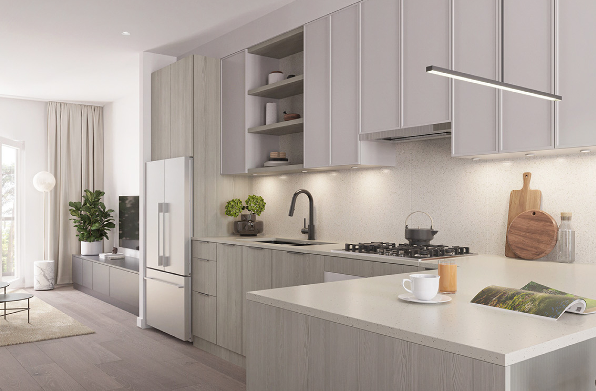 Modern and functional, Dwell interiors are forward-thinking to foster connection and efficient living. Storage spaces have been thoughtfully considered across all homes, adding large pantries, dens and added flex spaces wherever possible. Contemporary finishes have been selected to curate tranquil, clean, and welcoming spaces.